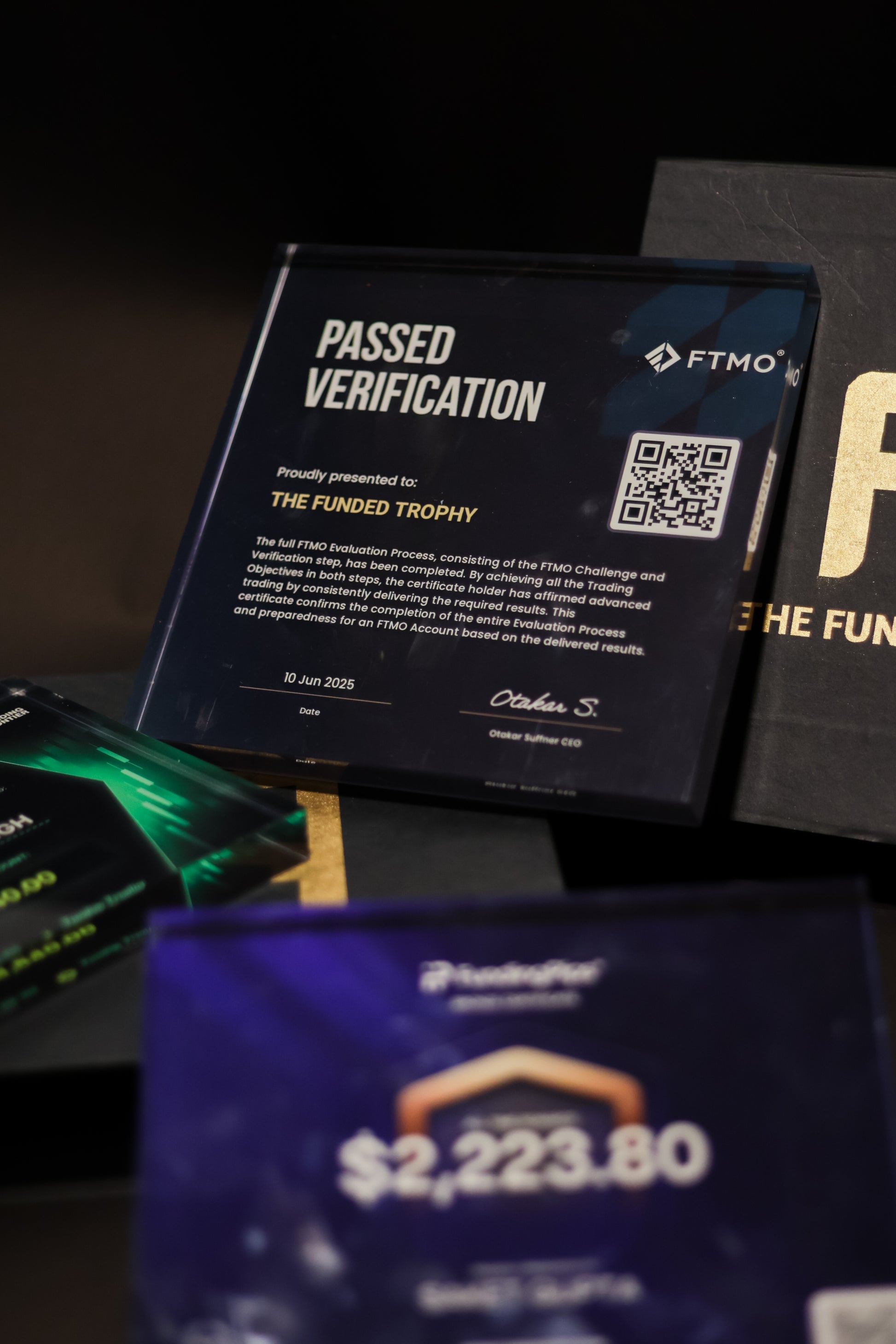 The Funded Trophy stands as a testament to your hard-earned success in trading. Display it proudly as a mark of your dedication and skill.