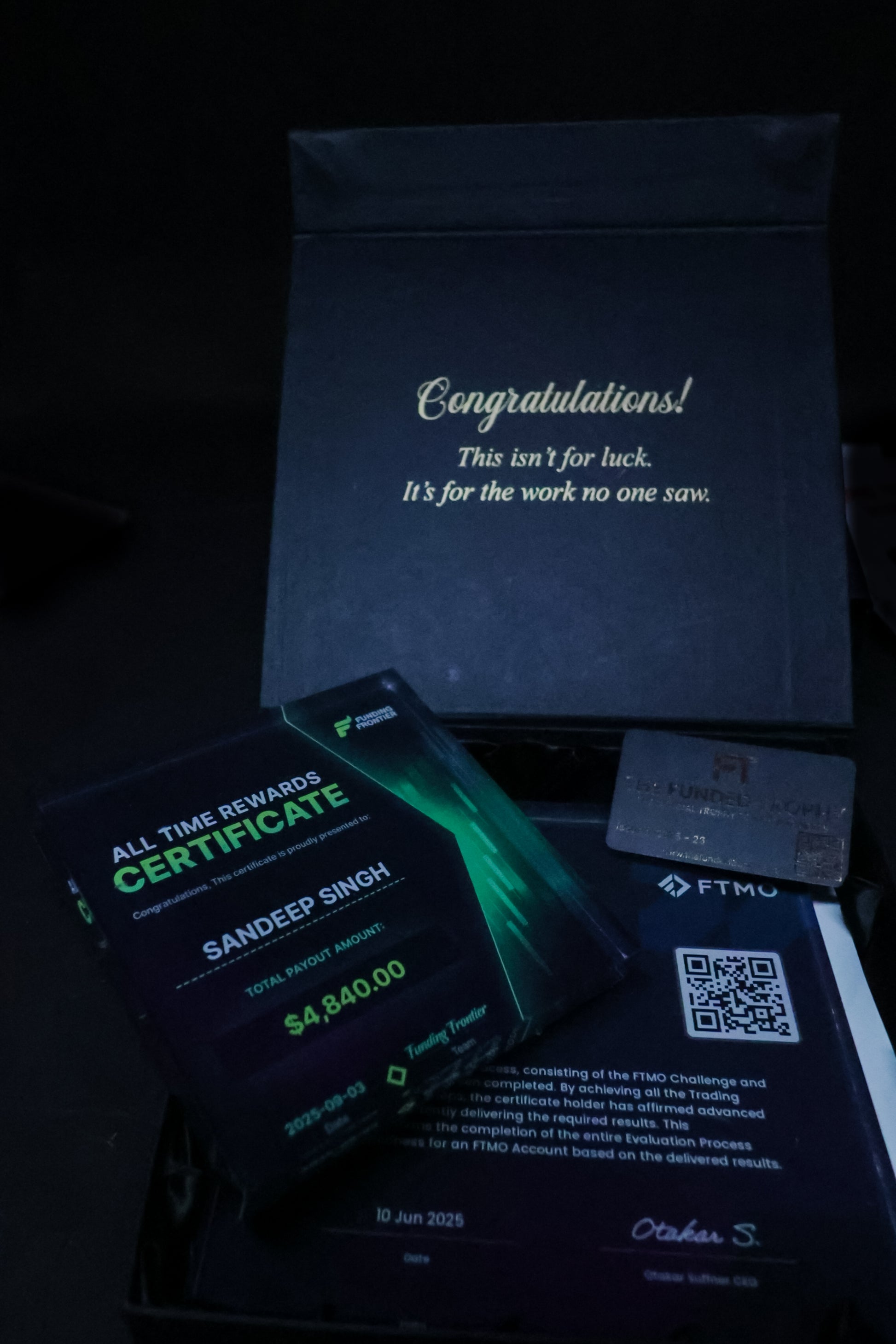 Get your premium Funded Trophy delivered right to your doorstep β a timeless reminder of your trading success.
